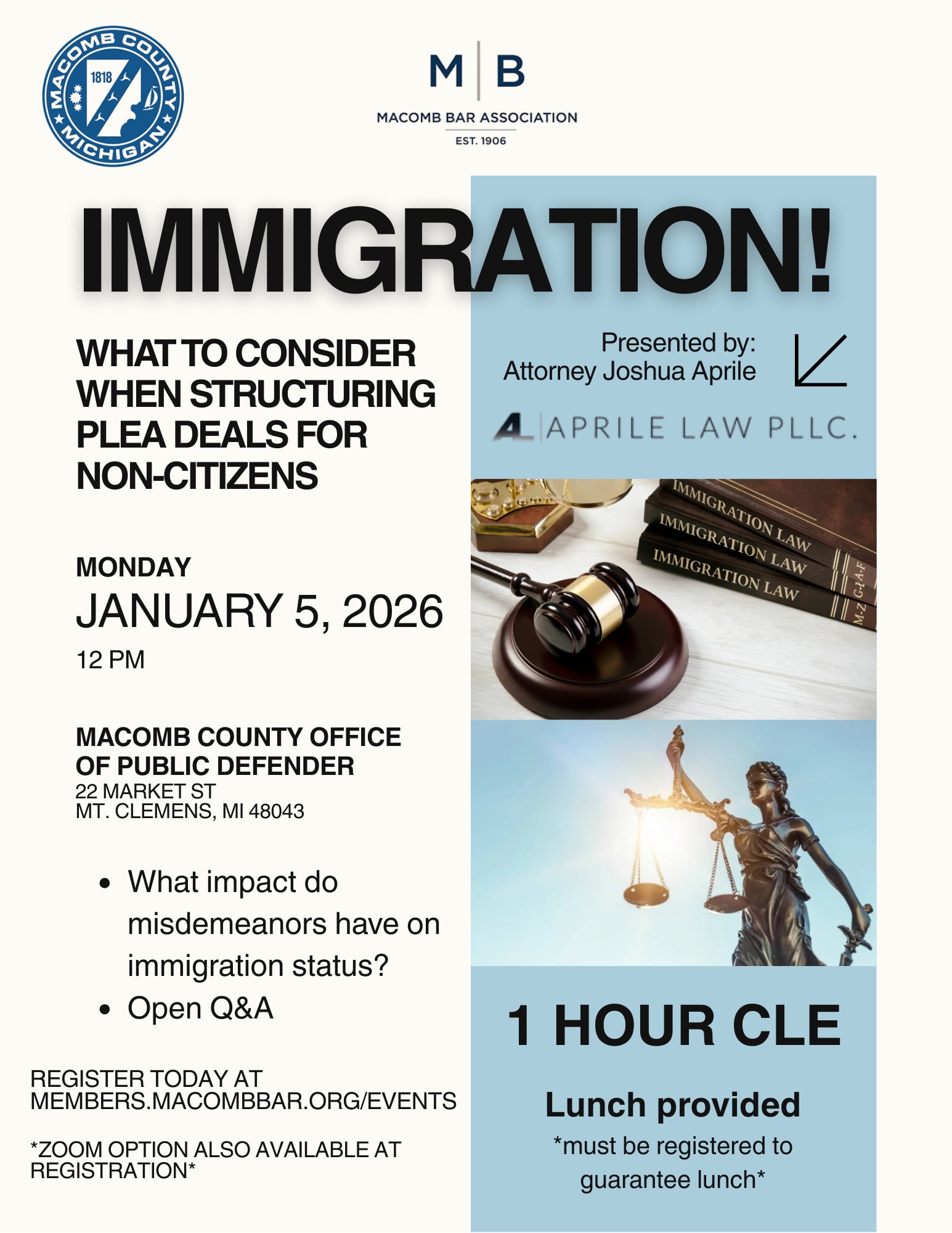 1 Hour CLE - Lunch provided *must be registered*